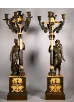 à six feux en bronze doré et patiné représentant un ange et une vestale