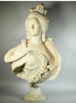 Buste en marbre sculpté sur piédouche représentant une femme de l’aristocratie