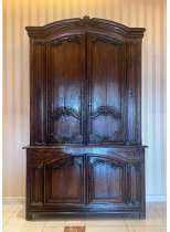 Bois naturel laqué noir et portes en argent repoussé. H_223 cm