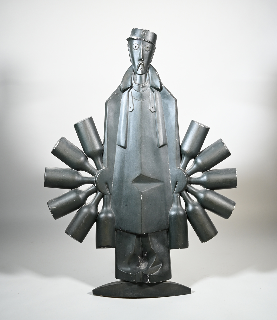 Bois laqué polychrome à décor dit « arte povera ». H_138 l_109 l_37 cm