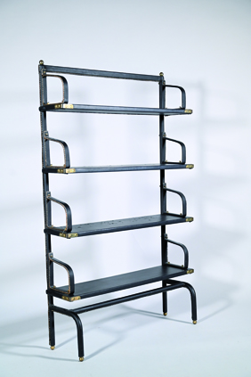 Bois naturel laqué noir et portes en argent repoussé. H_223 cm
