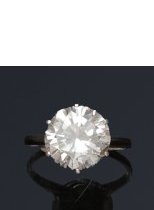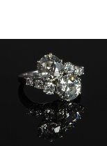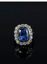 Bague en platine, sertie d’un saphir bleu clair et de 16 diamants. PB : 7,8 g.